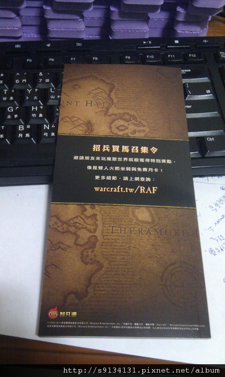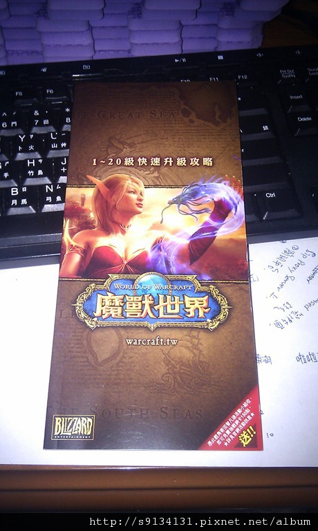 結帳完要離開的時候發現門口有熟悉的魔獸世界廣告,原本以為只是一張的宣傳單,確定可以拿取後,小蛙就拿回來了。第一個感想是,智凡迪也太厲害了吧!不只全彩印刷,紙質還不差(有點像銅版紙),厚厚一本,真不知道是賺太大,發這些文宣招攬更多玩家,讓自己賺更大;還是賺太少,玩家越來越少,告急之下砸重本來吸引玩家。來看圖吧!正面還是一樣超正的血精靈(應該沒記錯吧!離開魔獸很久了)